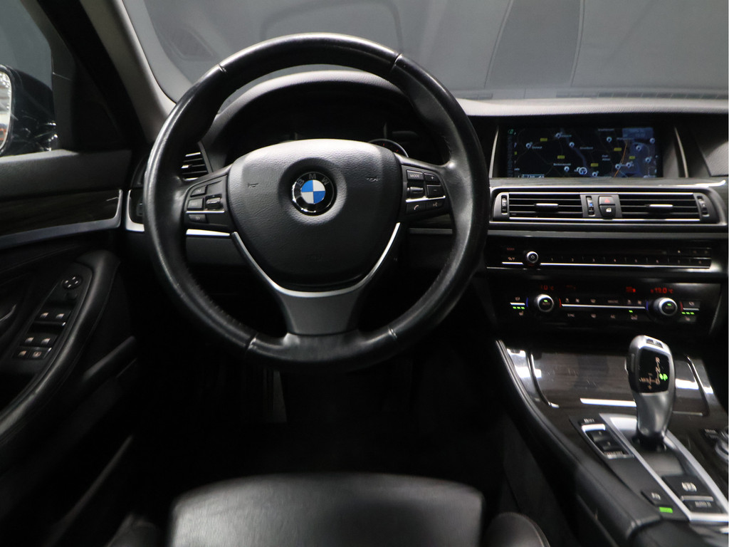 Dit is onmiskenbaar Duitse topkwaliteit. Indrukwekkende prestaties, vooruitstrevende techniek en ultiem betrouwbaar. Deze BMW 5-serie heeft het allemaal. Een krachtige motor geeft deze auto zijn sportieve prestaties. Het lederen interieur ademt luxe, en het zit uiteraard fantastisch. De comfortstoelen zitten op lange ritten zo prettig dat u bijna vergeet te pauzeren. Dankzij de xenonverlichting profiteert u in het donker van een krachtige en heldere lichtbundel. De uitmonstering van deze auto wordt gecompleteerd door onder meer elektrische zonnerollo voor de achterruit, 18 inch lichtmetalen velgen en elektrisch verstelbare lendensteun.