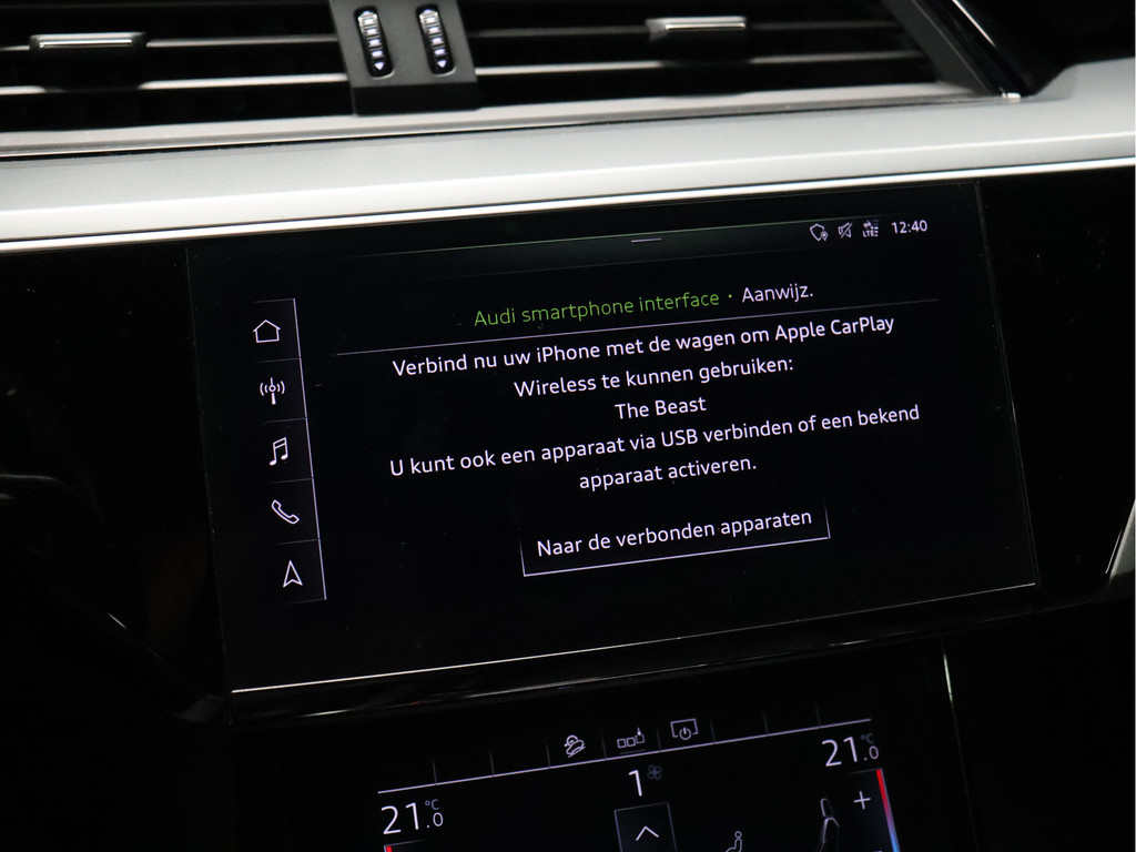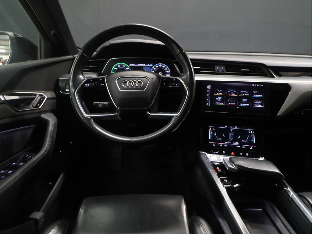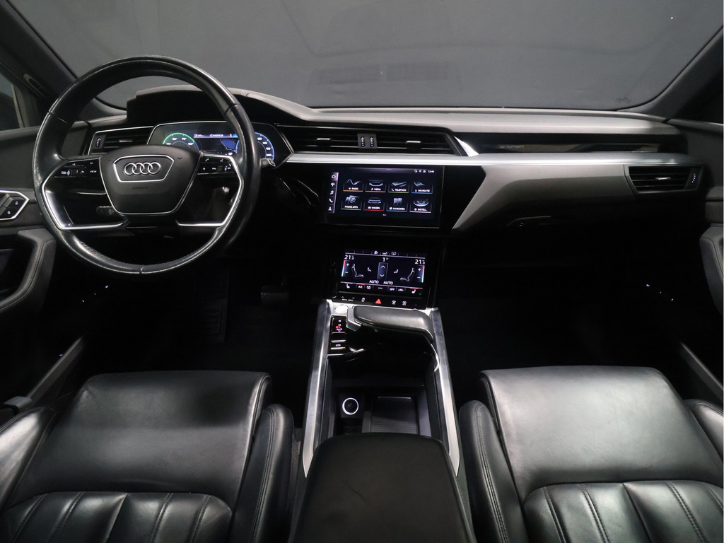 Audi heeft de auto opnieuw uitgevonden. De volledig elektrische Audi e-tron is duurzaam, maar biedt tegelijk veel rijcomfort en geweldige prestaties. Power, stilte en nul procent uitlaatgas krijgt u met de elektromotor. De krachtige motor geeft deze Audi uitstekende prestaties. Elke wegdek voelt aan als een biljartlaken dankzij de luchtvering. Het lederen interieur geeft deze auto luxe en klasse. Dankzij de elektrische stoelbediening is het gemakkelijk om de optimale zitpositie te vinden. De elektrisch bedienbare achterklep opent met een druk op de knop. Bij de rijke uitrusting horen ook 20 inch lichtmetalen velgen, LED koplampen, warmtewerend glas, in delen neerklapbare achterbank, LED-achterlichten en verstelbare lendensteunen.