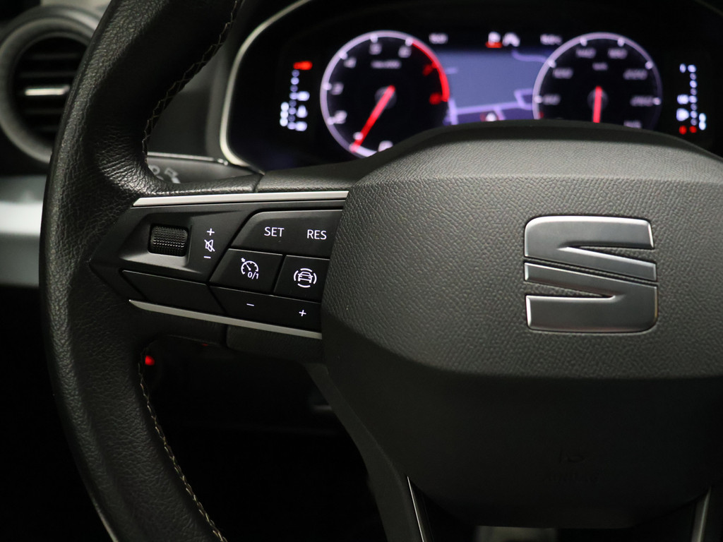 Over het digitale dashboard is goed nagedacht. Alle belangrijke functies binnen en buiten in één oogopslag. Had u de auto nou wel afgesloten? Met Connected Services checkt u het overal en altijd. Het navigatiesysteem loodst u snel naar uw reisdoel. De automatische airconditioning zorgt voor een prettige binnentemperatuur. Audio aan/uit? Andere zender? Volgende track? Even klikken via de audiobediening op het stuur en het is geregeld. Ook is de SEAT uitgerust met: DAB ontvangst, parkeersensoren voor en achter, regensensor, cruise control met snelheidsbegrenzer, automatisch dimmende binnenspiegel en lederen stuur.