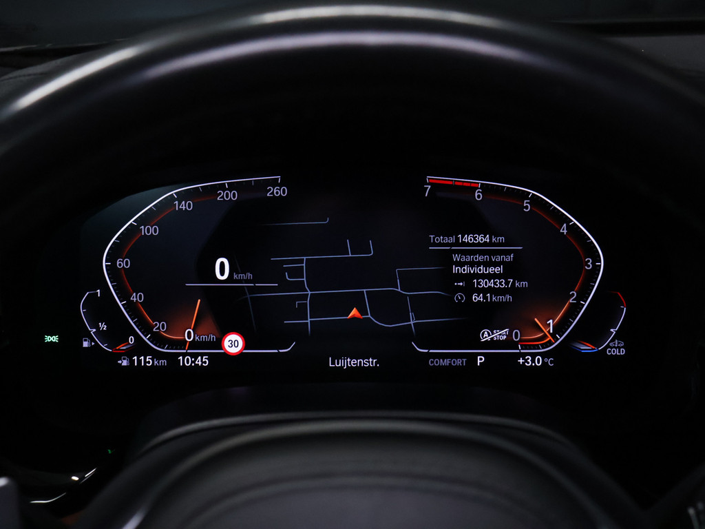 Het digitale dashboard is niet alleen enorm fraai en handig, maar draagt actief bij aan een veilige en slimme rit. De achteruitrijcamera brengt precies in zicht wat zich achter u bevindt en toont een glashelder beeld op hoge resolutie. Een geluidssignaal waarschuwt hoeveel ruimte u nog heeft. Bij deze auto is uw smartphone een geavanceerde afstandsbediening. Remote services brengen u overal in contact met uw auto. Deze BMW is voorzien van spraakbediening voor het navigatiesysteem met harde schijf en voor het audio-installatiesysteem met DAB-ontvangst. Maar u kunt ook de knoppen op het stuur gebruiken. Telefoonaccu in het rood? Laad 'm simpel op met de draadloze oplaadmogelijkheid voor telefoons. Ook is de BMW uitgerust met: WIFI-hotspot, achteropkomend verkeer waarschuwing, automatische airconditioning, schakelpaddles aan het stuur, regensensor en cruise control.