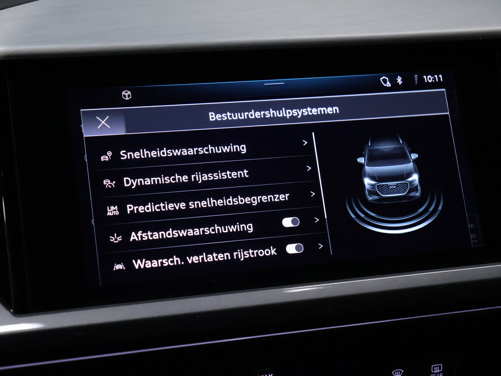 In de Audi Q4 e-tron heeft uw veiligheid en die van uw omgeving prioriteit. Dat de auto steeds meer taken van de bestuurder overneemt, merkt u bijvoorbeeld aan het systeem voor verkeersbord-detectie in deze auto. Ongemerkt buiten de rijstrook raken? Nee hoor, het Lane-keeping systeem waarschuwt en corrigeert.