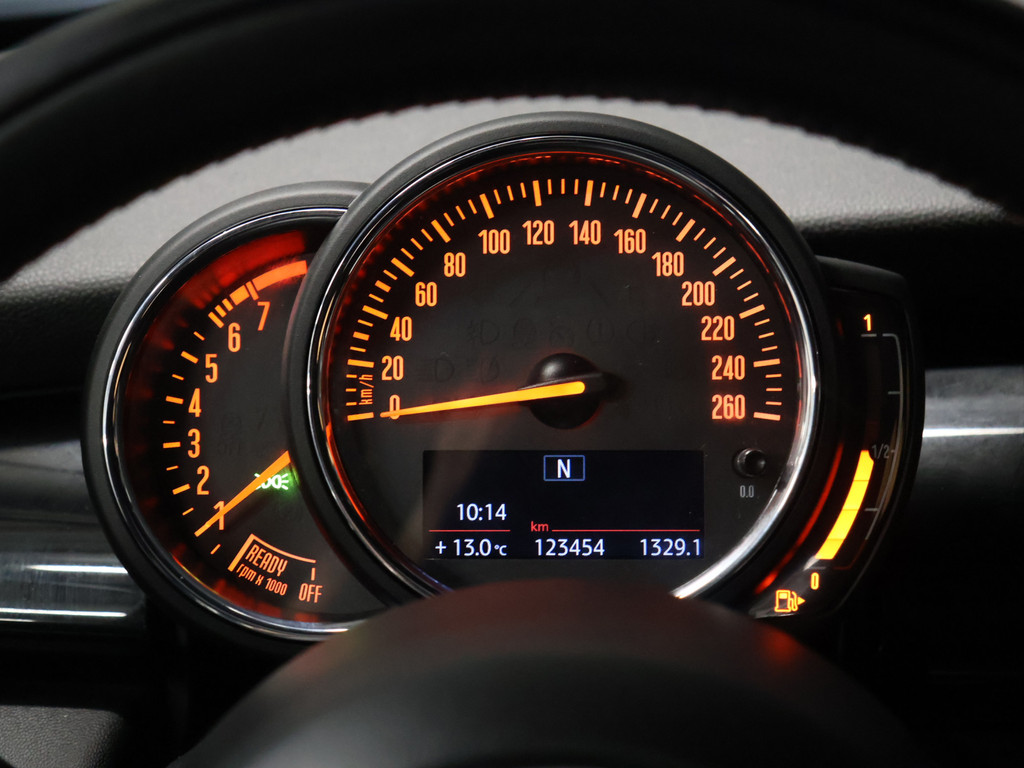 Uw smartphone wordt een dashboard, met alle functies in beeld. Dankzij Connected Services en de speciale app. Deze MINI is voorzien van knoppen op het stuur om het full map navigatiesysteem en het audiosysteem met DAB-ontvangst te bedienen. Onbedoeld snijden na het inhalen gebeurt niet meer, dankzij de achteropkomend verkeer waarschuwing. Automatische airconditioning verwarmt of koelt het interieur met een druk op de knop. Liever gepiep dan gekraak? Dan zult u blij zijn met de aanwezige parkeersensoren! En deze auto heeft ook regensensor, cruise control, keyless entry, centrale deurvergrendeling met afstandsbediening en boordcomputer als standaard uitrusting.