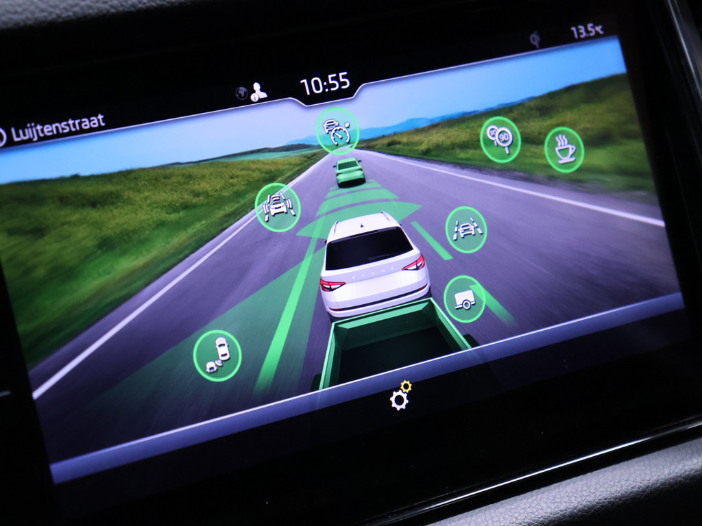 Zoals u mag verwachten van deze ŠKODA Kodiaq is hij uitgerust met een reeks aan actieve veiligheidssystemen. De camera van de verkeersborddetectie herkent verschillende soorten verkeersborden en toont deze op het dashboard. Mooi binnen de lijnen van de rijstrook blijven? Het Lane-keeping systeem helpt altijd een handje. Het forward collision warning-systeem is constant alert en detecteert via sensor de afstand tot voorliggers. Wordt die te klein, dan volgt een automatische waarschuwing. U bent mede dankzij dodehoekdetectie, vermoeidheidsherkenning, autonoom remsysteem en bandenspanningcontrolesysteem steeds veilig onderweg.