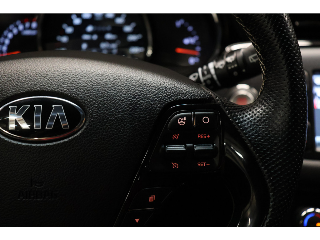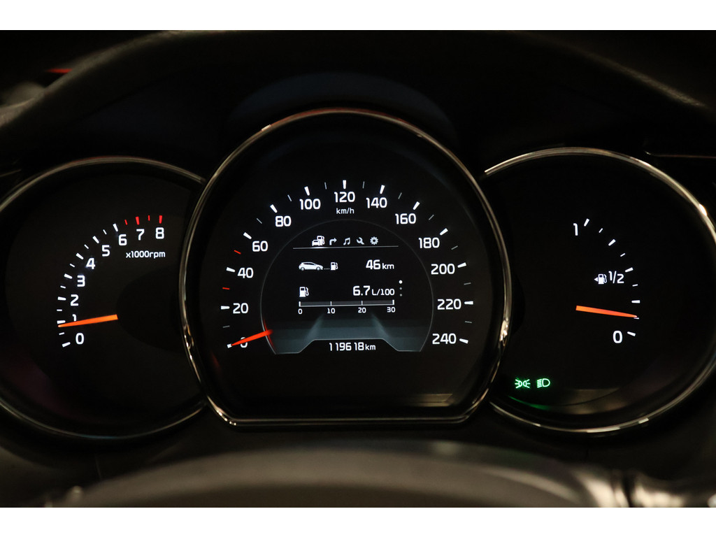 Wat een gemak, die achteruitrijcamera. Alles in beeld zonder capriolen. Kies de muziek waarvan u houdt, dankzij de DAB-radio klinkt het altijd geweldig. Intussen bedient u het audiosysteem en het navigatiesysteem met de knoppen op het stuur. Automatische airconditioning verwarmt of koelt het interieur met een druk op de knop. Het luxeniveau in deze Kia is niet alleen gericht op comfort, maar ook op uw veiligheid. Tal van sensoren helpen u om de omgeving in de gaten te houden. De automatisch inschakelbare verlichting zorgt dat automatisch de verlichting wordt ingeschakeld als het donker wordt, wat bijvoorbeeld in tunnels erg handig is. En de regensensor zet de ruitenwissers aan zonder dat u eraan hoeft te denken. De voordelen van de aanwezige cruise control hoeven we niet uit te leggen. Een mooie, constante snelheid - niet te snel, niet te langzaam. Precies goed. Natuurlijk behoren keyless entry, automatisch dimmende binnenspiegel en centrale deurvergrendeling met afstandsbediening ook tot de uitrusting van deze complete auto.