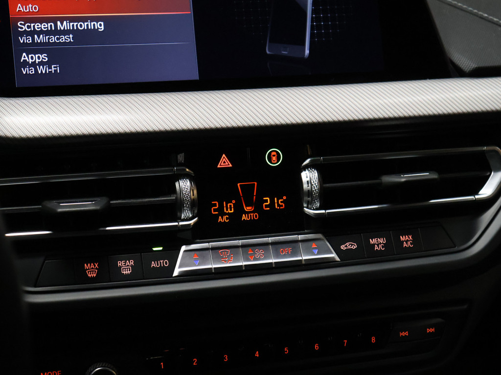 Het digitale dashboard in deze auto maakt personalisatie van uw cockpitinterface mogelijk. De jeugd is niet los te maken van hun smartphone, en dat zie je ook aan deze jonge auto. Via een speciale app staat u overal en altijd in contact met uw vierwieler. Superhandig! Voor de veiligheid op de weg is het goed dat u uw ogen op de weg kunt houden en uw handen aan het stuur. Want het audiosysteem, met DAB-ontvangst, en het full map navigatiesysteem bedient u vanaf het stuurwiel en met spraakbediening. Bij het wisselen van rijbaan kan een dode hoek ontstaan waardoor achterliggers te dichtbij kunnen komen. De achteropkomend verkeer waarschuwing geeft in dat geval automatisch een signaal. Het comfort wordt verhoogd door de aanwezige automatische airconditioning. Ook is de BMW uitgerust met: lederen sportstuur, parkeersensoren achter, regensensor, cruise control, centrale deurvergrendeling met afstandsbediening en boordcomputer.