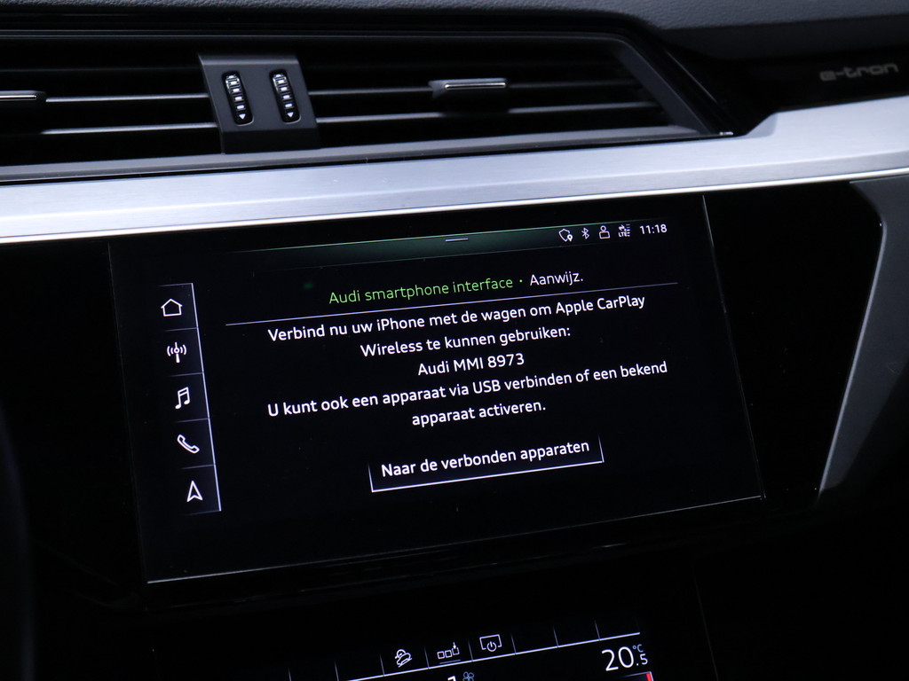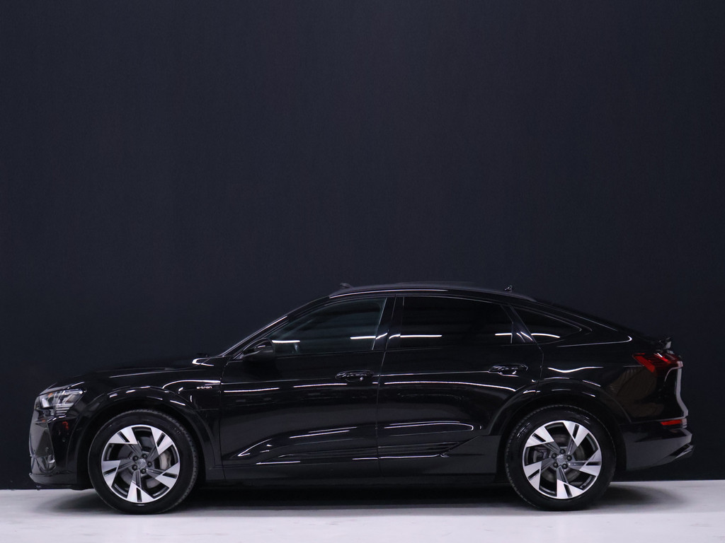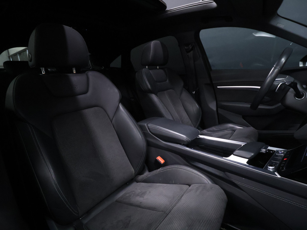 Kijk naar de zelfbewuste vormgeving. Ontdek de vernieuwende technologie aan boord. De Audi e-tron Sportback is een unieke elektrische auto. De prestaties van de elektromotor kunnen de vergelijking met een brandstofmotor moeiteloos aan. De S-Line styling geeft dit model een elegante en opvallende uitstraling. De krachtige motor geeft deze Audi uitstekende prestaties. De luchtvering levert niet alleen meer comfort, maar draagt tevens bij aan de veiligheid. Zit u goed? De stoelen zijn eenvoudig instelbaar dankzij de elektrische bediening met geheugen. Voor extra lichtinval en een frisse luchtstroom zorgt het elektrisch bediende panoramadak. Een praktische extra is de elektrisch bedienbare achterklep die opent en sluit met een druk op de knop. Bij de rijke uitrusting horen ook 20 inch lichtmetalen velgen, LED koplampen, adaptief dempingsysteem, warmtewerend glas, zwarte hemelbekleding en in delen neerklapbare achterbank.